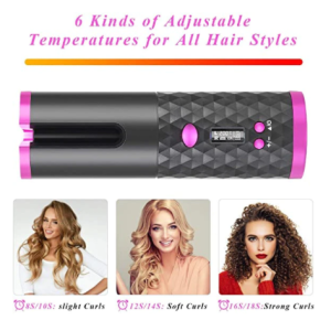 Ondulator automat fara fir, Ceramic, Portabil, LCD, 6 trepte temperatura, Negru/ Roz