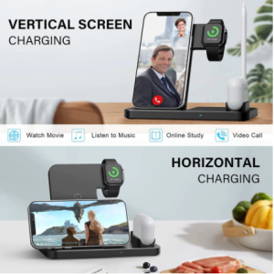 Statie incarcare/incarcator Wireless 4in1, pentru iPhone/Airpods/Apple Watch/Suport pix pentru Ipad