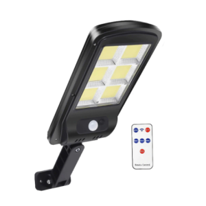 Lampa solara de perete, BK120, 6 x COB LED, cu telecomanda, senzor miscare, acumulator 4800mAh, panou solar polisiliciu, negru