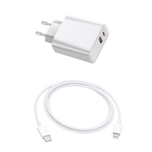 Set Incarcator Retea si Cablu Lightning – USB C Saiconcept, Type-C PD + USB, FastCharge, Power Delivery 18W, Alb