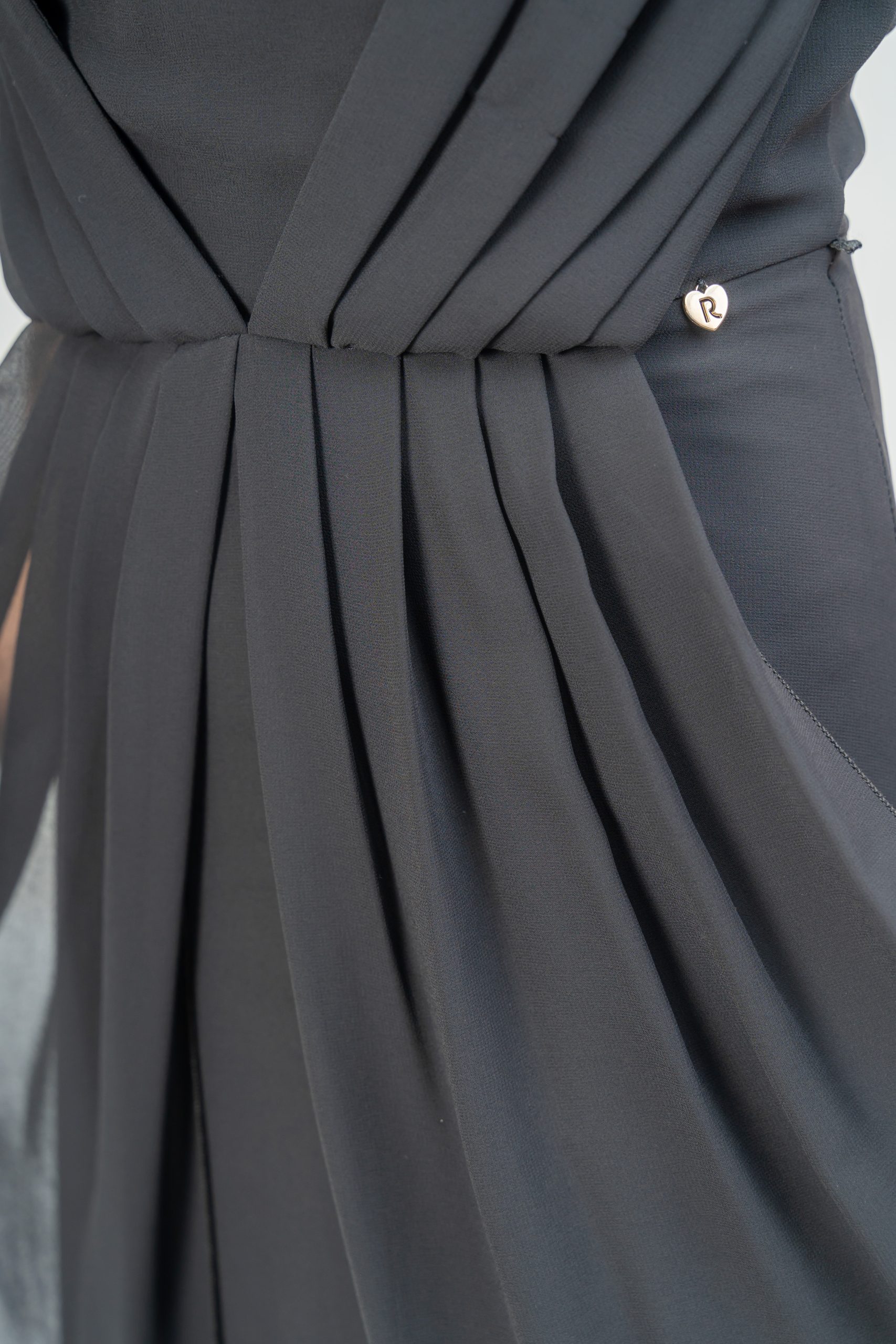 Aspectul de voal al materialului e printre cele mai dorite tesaturi pentru rochiile de ocazie. Nu se va demoda niciodata iar culoarea neagra intotdeauna va exprima un aer de eleganta.