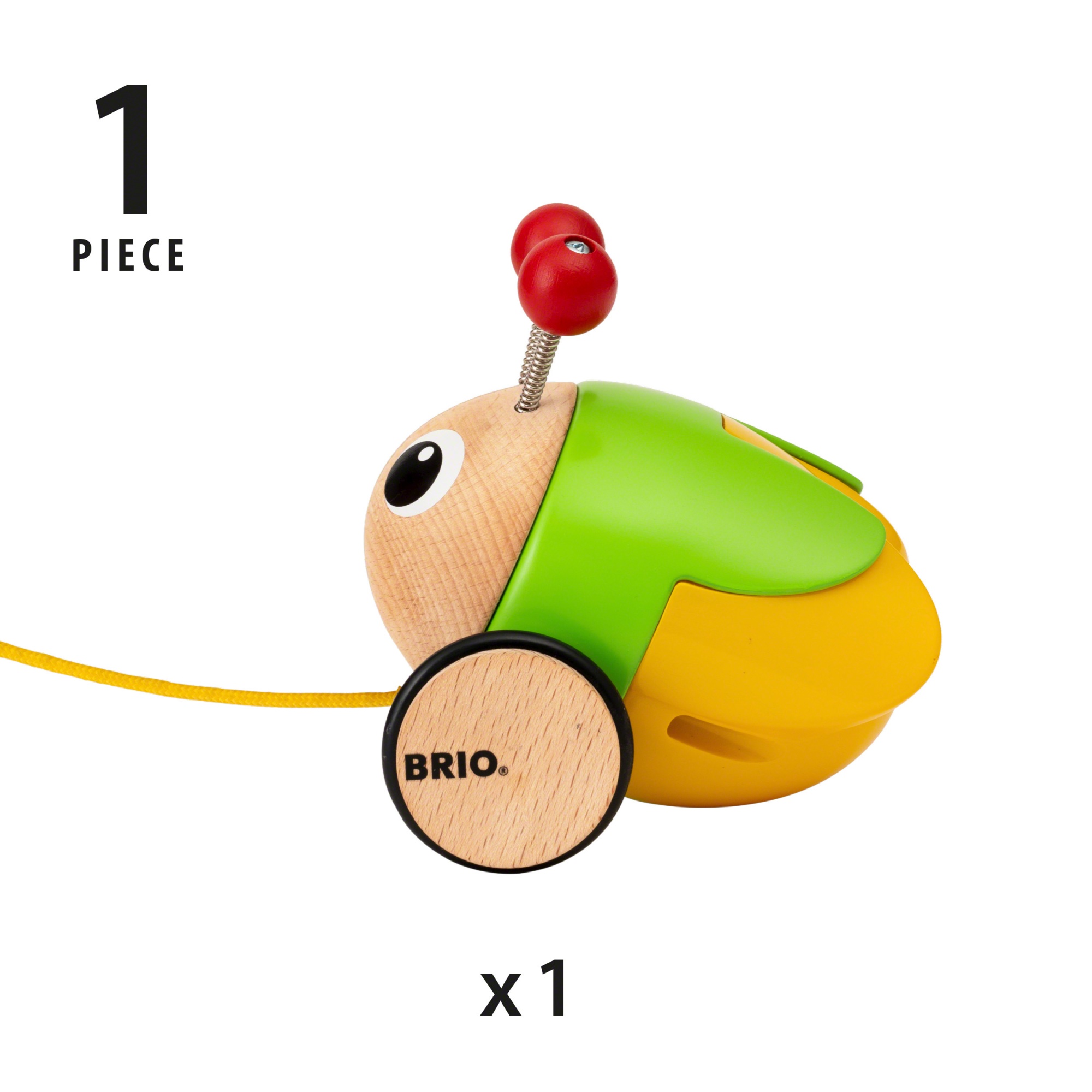 tineti-l pe cel mic in miscare cu aceasta jucarie de tras atragatoare si distractiva. Pe masura ce 30255 jucarie de tras licurici luminos de la BRIO se misca pe podea, aceasta insecta prietenoasa prinde viata cu o lumina intermitenta, sunete de zumzet si antene dragalase care tremura. Efectele jucause ale licuriciului in miscare ajuta la angajarea copiilor mici si ii incurajeaza sa continue sa invete sa mearga. Materiale jucarie: lemn, plastic, metal