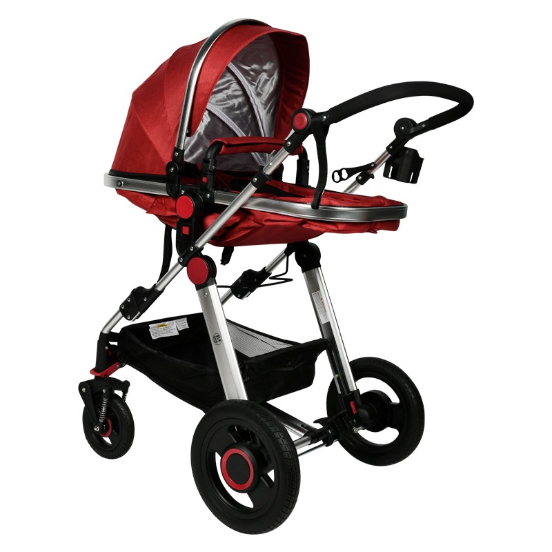• caruciorul are roti de cauciuc cu diametru de 18 cm si 31 cm pentru fata si respectiv spatele caruciorului.