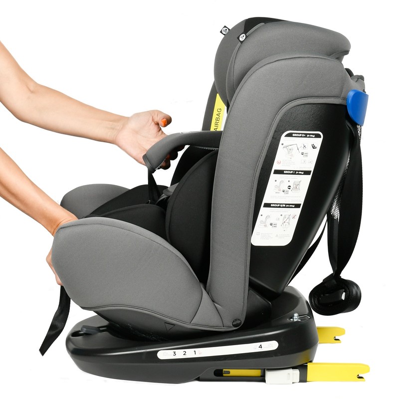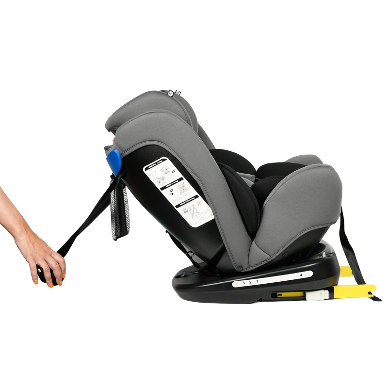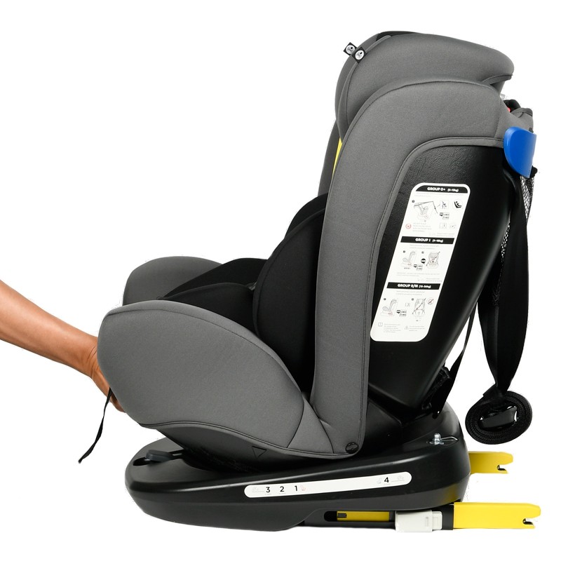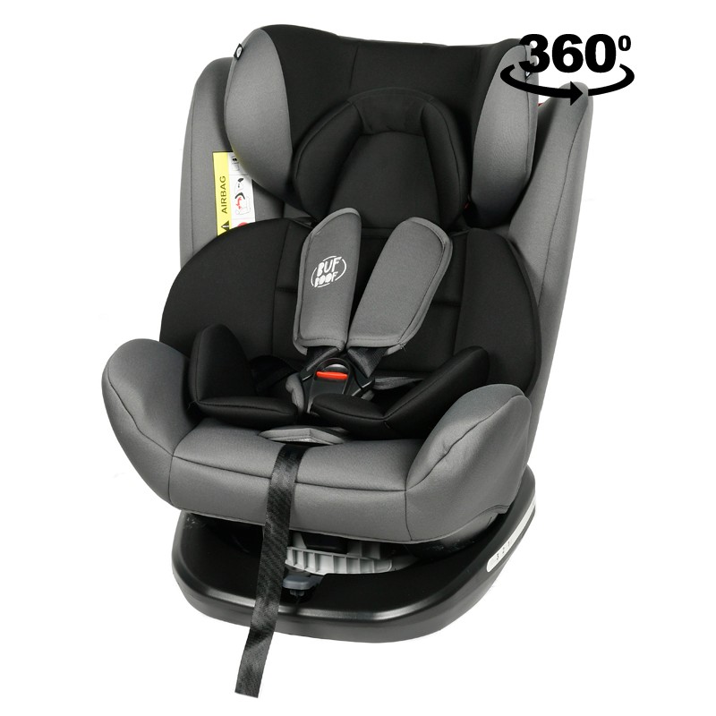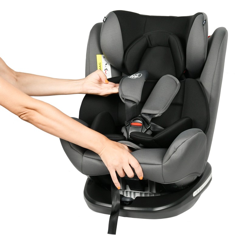 • Scaunul este prevazut cu sistem pivotant care permite accesul mult mai facil al copilului in scaun, intrucat poate fi ROTIT 360 GRADE, inclusiv cu fata catre portiera masinii.